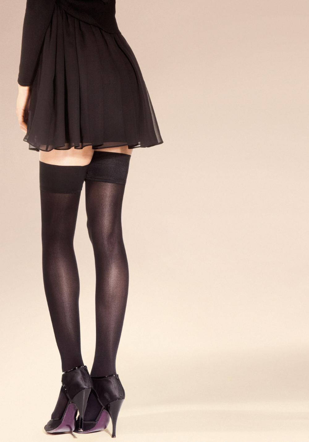 Autoreggente elasticizzata in microfibra con balza liscia lucida in silicone. 40 den.