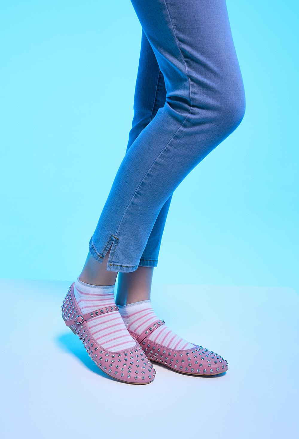 Minicalzino moda con cotone con motivo di righe sottili a contrasto. Bordo comfort doppio rifinito con lamé. Punta e tallone anatomici.